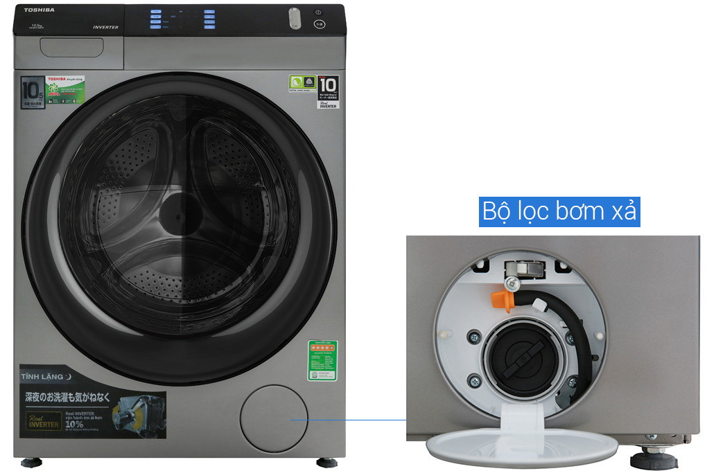Nhờ ứng dụng công nghệ Real Inverter, bạn có thể yên tâm về khả năng vận hành yên tĩnh, bền bỉ, đồng thời tiết kiệm đáng kể chi phí điện năng của chiếc máy giặt Toshiba TW-BH115W4V(SK) này.