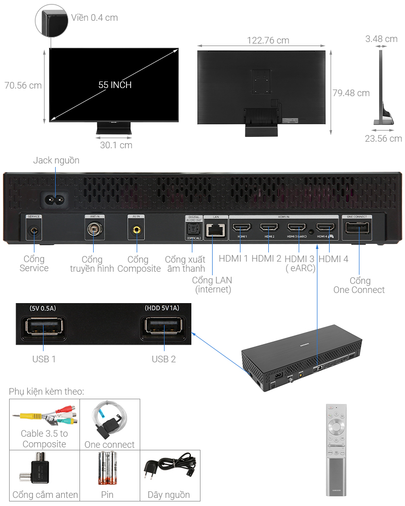 Smart Tivi QLED Samsung 4K 55 inch QA55Q95T sở hữu thiết kế tràn viền 4 cạnh tinh tế kết hợp với cáp quang siêu mảnh cực tiện lợi sẽ mang đến không gian nội thất nhà bạn thêm sang trọng và hiện đại hơn.